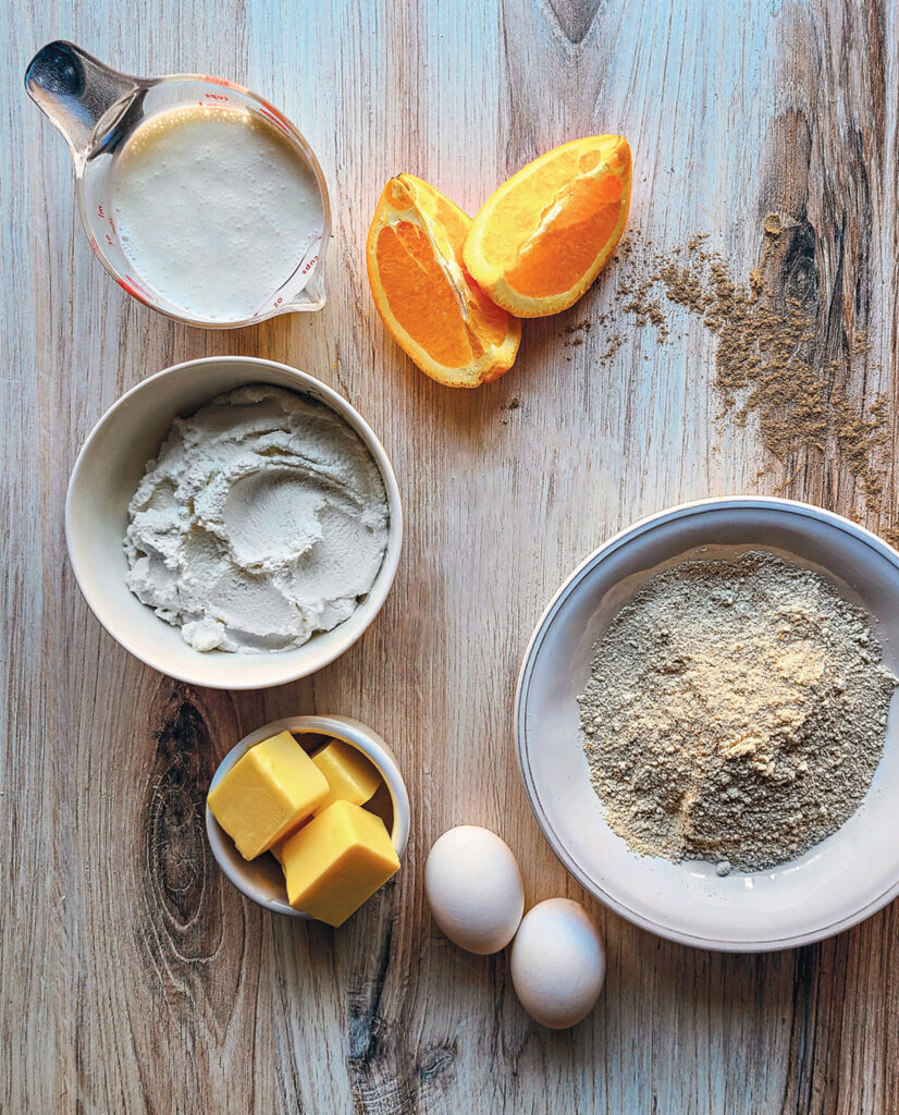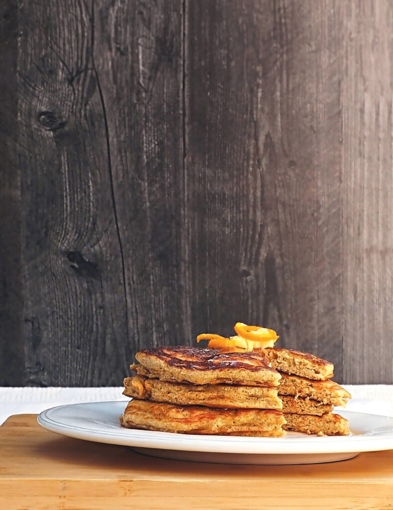 Orange and Ricotta Einkorn Pancakes with Honey-Maple Syrup