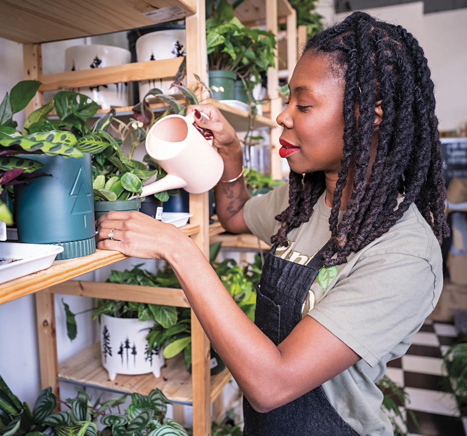I couldn’t quite find the plant people I was looking for. So, in May 2020, I created a community on Instagram, Brown Skin Plant Mama, which focuses on sharing my plant-raising experience as a mental wellness and healing tool. In doing so, I brought awareness to how others could do the same. My first act of service involved donating over 300 houseplants to every student at my daughter’s school during the 2020–21 academic year. I accomplished this through the generous donations of The Curious Plantaholic plant shop and parent fundraising in grades K–8. The local media soon picked up on the work I was doing; others found out about me, too, including community organizations and my former colleagues at Lehigh University. I was asked to speak to local elementary and college students and community members about plant therapy. All of a sudden I was considered an expert….